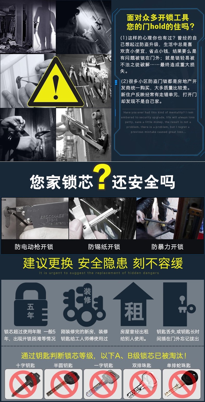 李关乡防盗门换锁芯安全吗,